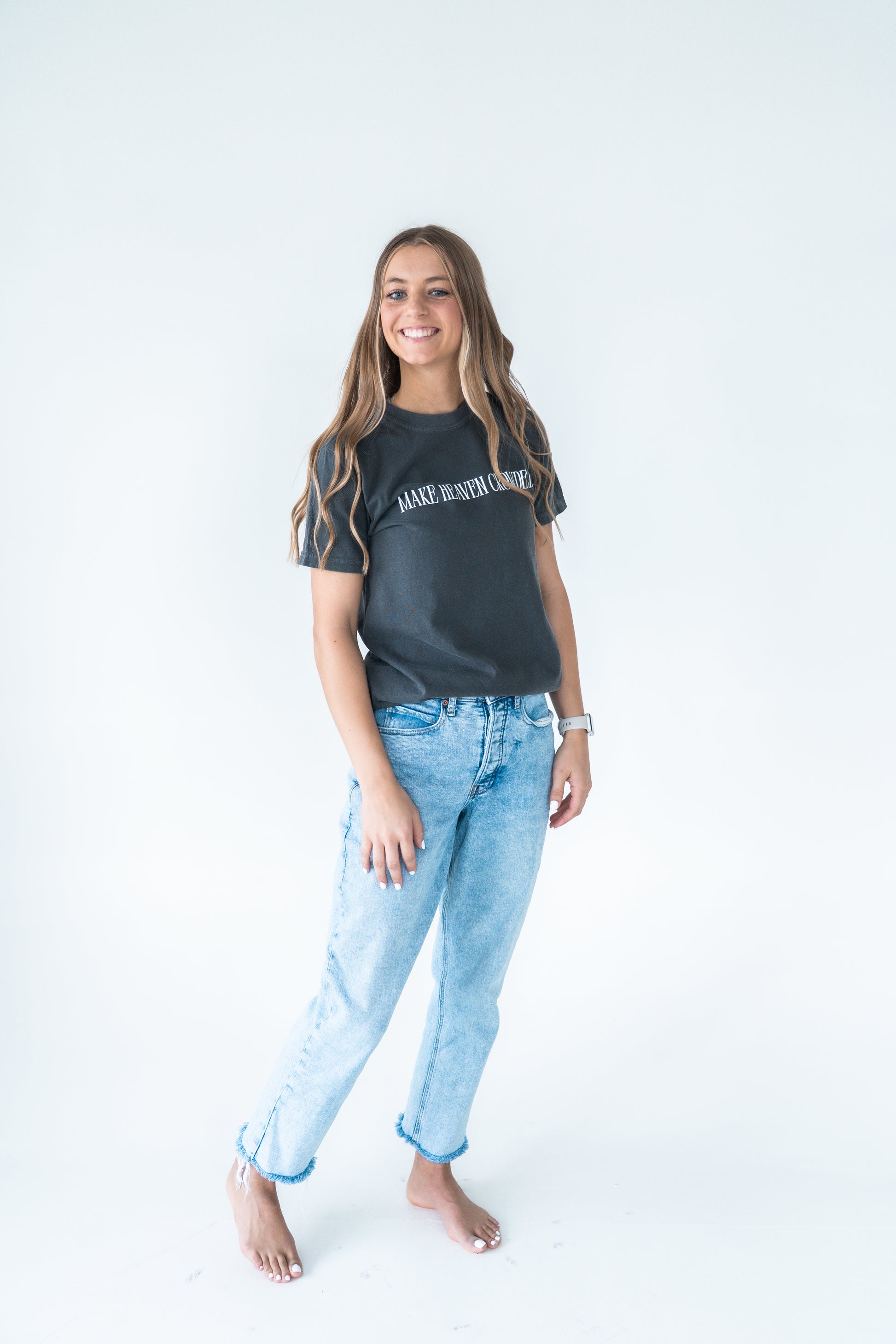 This ultra-soft Comfort Colors shirt in pepper brings a soft, washed black with vintage character. It's not a harsh, true black; instead, it brings depth, edge, and an effortlessly worn in vibe. This shirt Features a minimalist front design (subtle, but statement-making), it's made for effortless everyday wear.